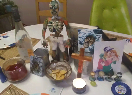 The table was decked out with a shrine for Meat Day!! It was mostly John